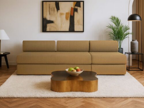 On retrouve l’essentiel sans complication. Le convertible se déploie simplement (tout est guidé), et le coffre de rangement dissimulé dans la méridienne avale plaid, oreillers et draps sans broncher. Orientation en angle gauche avec méridienne : fluide pour les pièces où le mur principal est à droite. Montage annoncé en 30 minutes (à deux, c’est mieux) et livré en 3 colis. Pour la vie réelle, c’est pensé pratique.