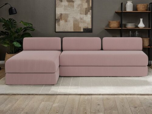 Pas de convertible ni d’angle réversible : c’est un angle gauche fixe, assumé. En échange, on gagne une assise plus dense et durable. L’entretien est simple (chiffon humide sur le velours), les pieds de 13 cm facilitent le ménage, et le poids contenu (63,5 kg au total) reste gérable à deux. La livraison arrive en 2 colis (38 kg et 35 kg) pour passer facilement les portes, et le montage est guidé par une notice claire. Garantie 2 ans. Bref, il fait le job, sans tricher.