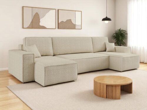 Sur le papier, la combinaison structure eucalyptus + contreplaqué, mousse PU et tissu polyester tient la route pour un usage familial. La fermeté de l’assise annonce une bonne tenue dans le temps. Les dossiers, plus souples (mousse broyée + polyester), demanderont un tapotage régulier pour rester rebondis. Les finitions sont propres, l’ensemble reste stable malgré les 98 kg. Les pieds très bas imposent un coup de balai plutôt qu’un robot, détail mais à savoir. Globalement, pour un canapé panoramique convertible avec deux grands coffres, la proposition Sweeek est solide et compétitive dans son segment. En clair: beaucoup d’usage réel pour un budget contenu.